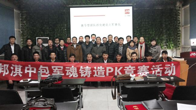 2月7日晚,為檢驗軍魂培訓落地效果,37名參訓人員在新療方形會議室分石羊隊、西北狼隊、亮劍隊、勇士隊進行了團隊風采展示,他們口號雄壯有力、隊伍整體劃一、彰顯訓練有素,最后,以景春勝為組長的內(nèi)務(wù)勇士隊勇拔頭籌,石羊隊及女子舞蹈隊分獲軍魂P(guān)K第一名及特別獎;在個人風采展示環(huán)節(jié)中,大家盡展才華、當仁不讓,唱歌、朗誦、笑話不一而足、你方演罷我登場,齊永峰、張少偉、馬小鵬分獲前三。8日早,在學習了中包“八大管理體系”后,進行了隆重的團隊宣誓活動,為進一步提升銷量、鞏固省內(nèi)第一、早日稱雄西北鼓與呼!此次活動達到了凝聚人心、匯聚力量的目的,頒獎、合影后,邦淇中包企業(yè)軍魂鑄造培訓營活動宣告圓滿結(jié)束。