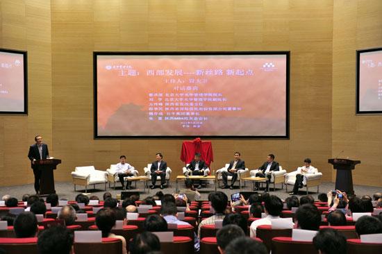 5月28日,絲綢之路發(fā)展論壇暨北京大學(xué)光華管理學(xué)院西安分院落成儀式在臨潼國家旅游休閑度假區(qū)舉行。全國政協(xié)副主席韓啟德,北京大學(xué)校長王恩哥,省委常委、市委書記魏民洲分別致辭。省長婁勤儉,省委常委、市委書記魏民洲,北京大學(xué)校長王恩哥,北大光華管理學(xué)院院長蔡洪濱共同為西安分院揭牌。儀式由市長董軍主持,省政府秘書長陳國強、省發(fā)改委主任方瑋峰、省教育廳廳長李興旺,市委常委呂健、任軍號、吳義勤參加落成儀式。參加參加儀式的還有西安曲江新區(qū)、臨潼區(qū)相關(guān)負責(zé)人及北京大學(xué)的專家學(xué)者、北大光華在陜校友等。北京大學(xué)光華管理學(xué)院名譽院長、著名經(jīng)濟學(xué)家、中國經(jīng)濟學(xué)界泰斗厲以寧教授就《論道德力量在經(jīng)濟活動中的作用》發(fā)表演講,為陜西打造成為絲綢之路經(jīng)濟帶的交通物流商貿(mào)樞紐、文化科教交流核心區(qū)、承接產(chǎn)業(yè)轉(zhuǎn)移示范區(qū)、高端生產(chǎn)要素聚集區(qū)的戰(zhàn)略的研究提供參考和借鑒。北京大學(xué)光華管理學(xué)院西安分院,將以其創(chuàng)造知識、培養(yǎng)領(lǐng)袖、引領(lǐng)社會的使命,為中西部地區(qū)的跨越式發(fā)展帶來全新的理念、強大的智庫支撐,助推陜西、西安絲綢之路經(jīng)濟帶新起點和橋頭堡的建設(shè)。