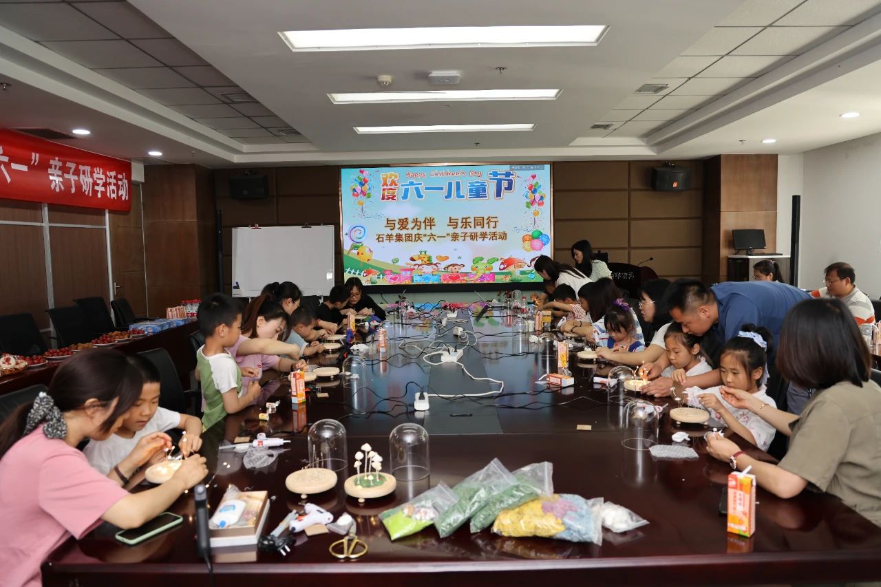 石羊集團(tuán)總部還開展了慶六一親子研學(xué)活動(dòng)。小朋友們帶著好奇心走進(jìn)爸爸媽媽的工作地參觀,了解他們的工作情況。大家觀看了石羊云養(yǎng)殖視頻,了解了小豬的生長(zhǎng)過程并提出各種問題,增長(zhǎng)了見識(shí)。在手工制作蘑菇燈的親子活動(dòng)中,父母和孩子間良好的協(xié)作互動(dòng),使親子關(guān)系更加融洽。